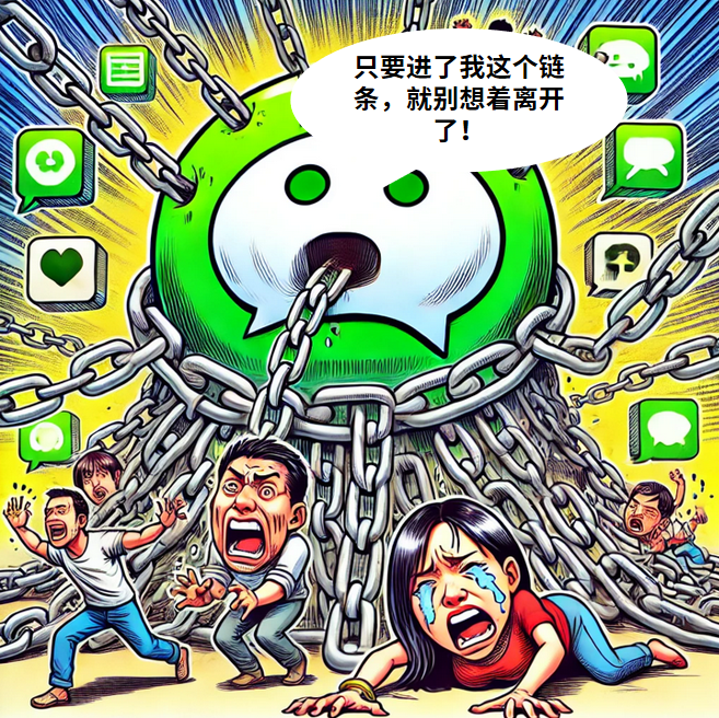 微信的生态魔力在于它不仅仅是一个聊天工具,它已经成为了人们生活的一部分。微信好友构建的社交链、支付、朋友圈、公众号,这些功能无缝地融入了用户的日常生活,形成了一种“离不开”的效应。每当用户尝试离开微信,就像要放弃一个自己生活中不可或缺的部分,迁移成本之高,让人望而却步。