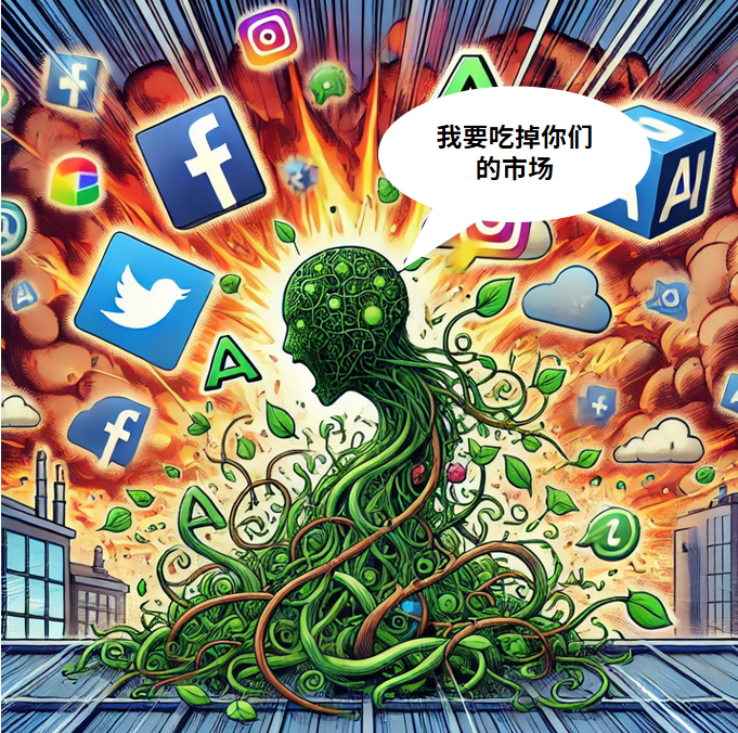 生成式AI正在快速占领市场,它不需要传统的生态壁垒,因为它本身就是“规则”的创造者。没有了用户商家的双向绑定,生成式AI顺利获得技术突破,直接切入用户的核心需求,打破了旧秩序。